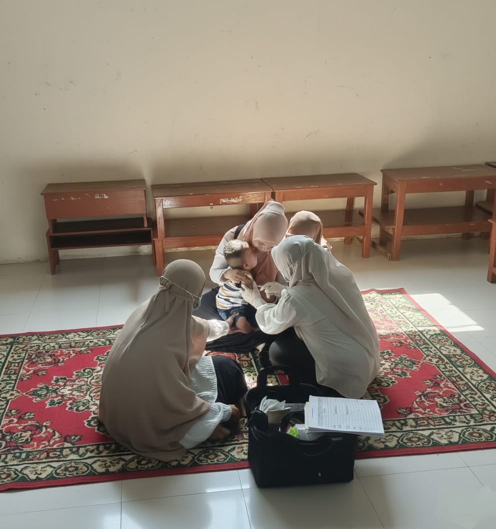 Kgiatan tersebut dilaksanakan langsung oleh Tim Petugas imunisasi, Petugas gizi, Bidan dusun, Perawat dan perawat gigi